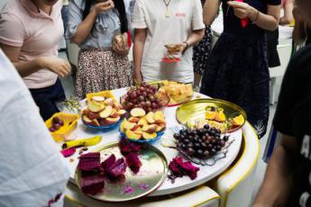 随后,在小编和其他同事的精心准备下,水果和月饼都已经摆放好了,就等发通知给大家来分享美食了!