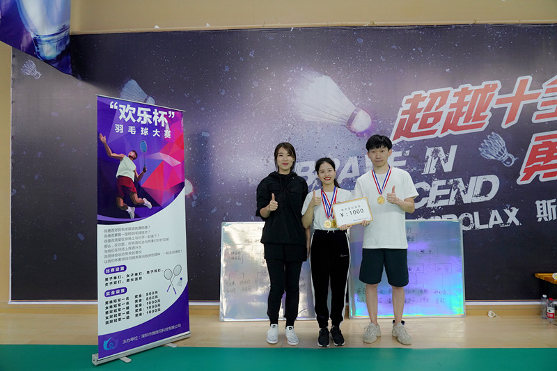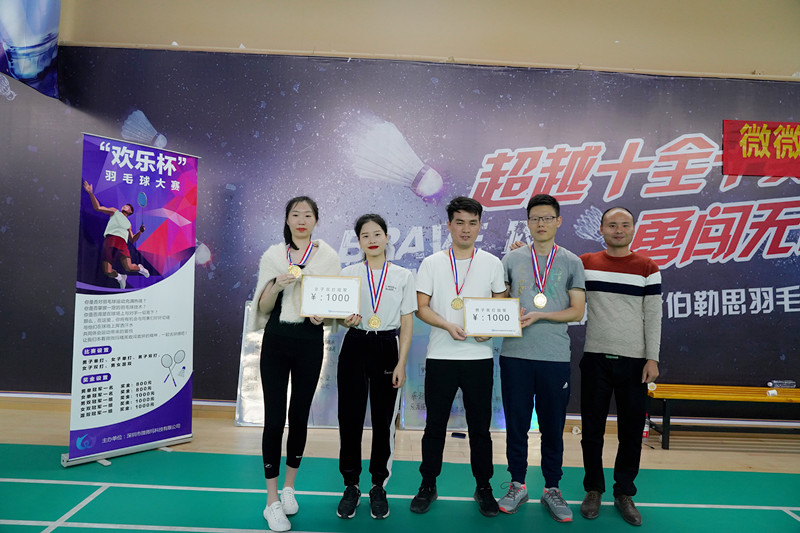 最终获得男子双打第一名的是仓储物流部的力量组合、获得女子双打第一名的是人事行政部与设计部组成的高颜值组。